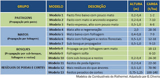 Para a previsão do comportamento do fogo sob estas condições, considera-se o modelo e a idade dos combustíveis, tendo por base as 7 características principais que nos dão uma indicação do comportamento potencial do fogo num complexo de combustíveis: